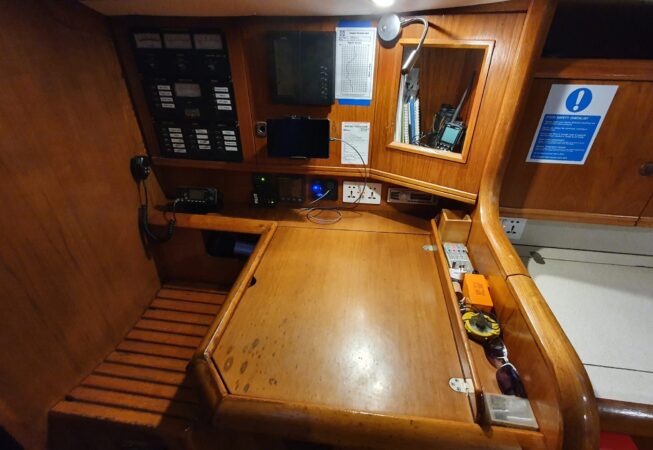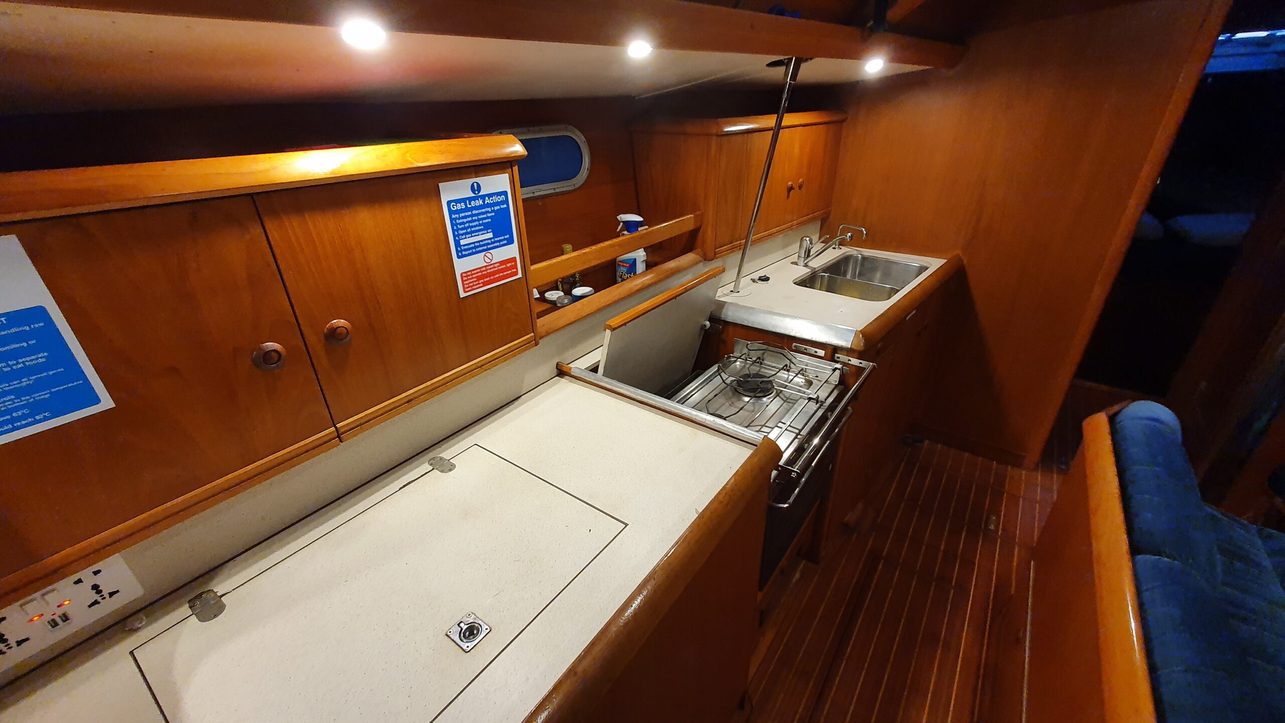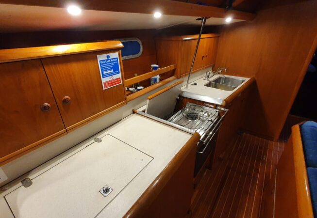 The boat has all you need for a week of sailing in the Clyde or on the the west coast, including in-mast furling for easy reeefing, dinghy and outboard, a fully equipped galley, 4 cabins for 8 guests, 2 heads, all required safety equipment (life jackets, liferaft, etc).